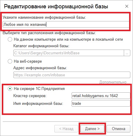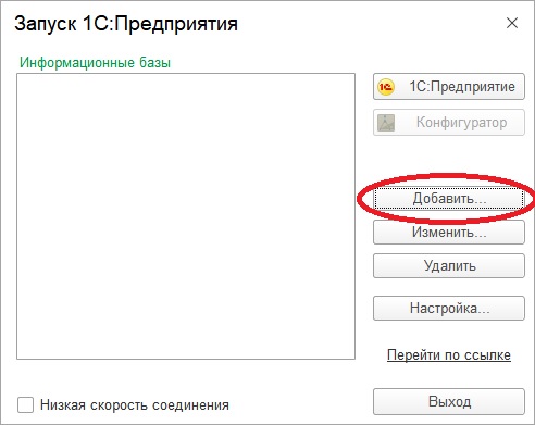 3. «Добавление в список существующей информационной базы» —> «Далее»